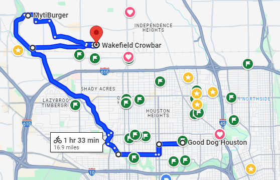 A: Well, you’ve stumbled upon a perfect combination of fellowship, exercise, beer, and tubed meats. We will ride bicycles to 3 locations in the Houston area to eat hot dogs, socialize, and have a frosty beverage. All are welcome.